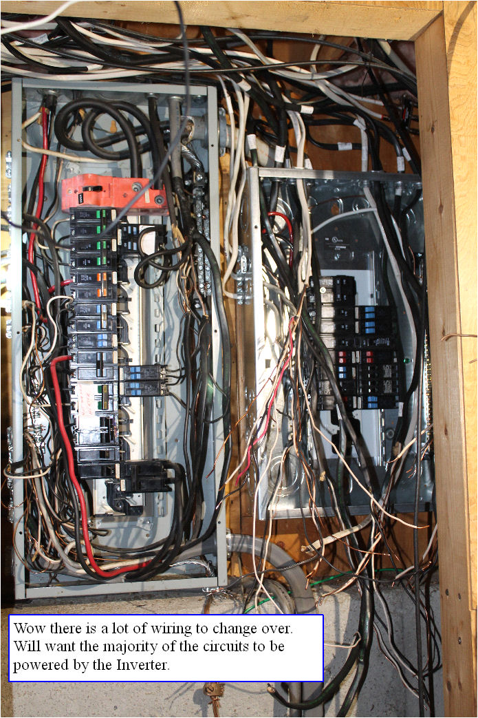 Got about half of the wires pulled out of the old box and moved to the new box. Much of the house is without power, except for the key circuits. Will quit for the day, and hope to get the rest moved to the new box, and turned on tomorrow, using the Inverter bypass.