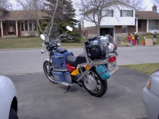 My first EV project was a 1980 Kawasaki 250 converted to electric over the winter of 2001-2002, using an E-tek motor. Due to extensive use of plastic from cut-up Rubbermaid Roughneck storage containers, it was nicknamed "The Rubberneck" on its EV Album posting. By the spring of 2002 I was experimenting with building a compact generator to make this in to a hybrid (my first "plug-in hybrid"!). This led me to an association with eCycle, starting from using their compact and efficient MG series brushless DC motors to make a DC generator at the battery pack voltage. By June this hybrid EV motorbike existed no more, put back to its original gasoline configuration. Why? I had advised the SAAQ (DMV of Quebec province) that I had converted the bike to electric. They responded that I must get it inspected. I would soon bring a Skoda electric car I had bought in Ontario, in for inspection at the same place (required as being an out-of-province used vehicle) and I was concerned that some home-made aspects of the bike, (like the brake pedal made of bent threaded rod, to make room for a battery, and a frying pan used as a chain guard), would cause the inspector to be leery of me and the Skoda car and give me a hard time. Also, since I had recently bought a Honda 400 in order to convert it to a better electric motorcycle, I decided to end the short but fun life of the Rubberneck electic.